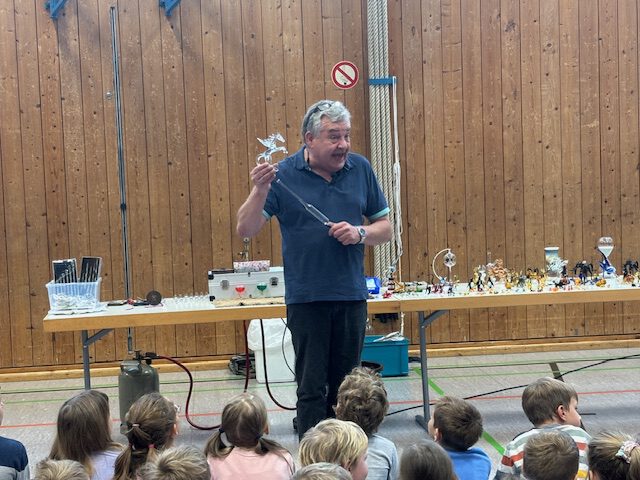 Der Glasbläser Herr Piller aus Coburg war bei uns in der Schule und hat mit seiner Kunst die Kinder so erfreut, dass sie ihm begeistert applaudierten.
